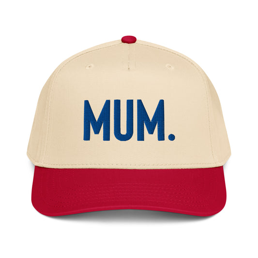 "The Bobbie" - Mum 5 Panel Cap - Canvas Hat, Red Bill, Blue Embroidery