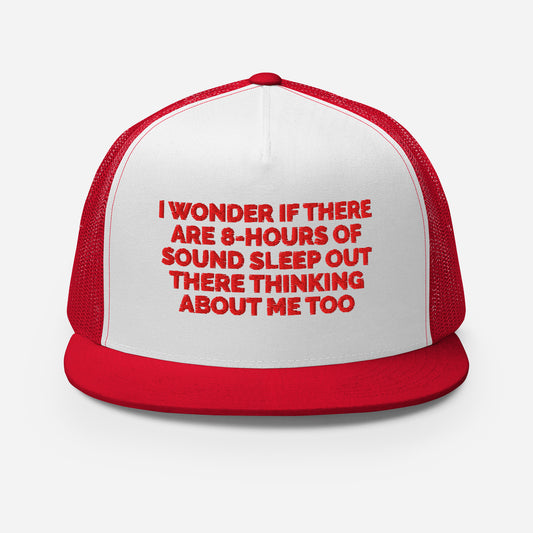 I Need Sleep Trucker Cap - Red Hat, White Front, Red Embroidery
