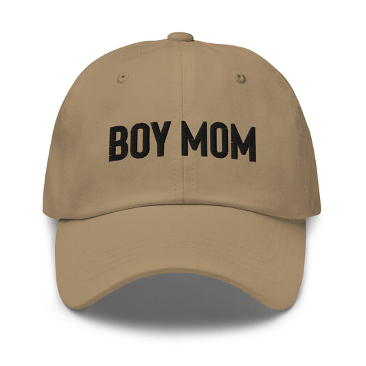 Boy Mom Classic Dad Hat - Khaki Hat, Black Embroidery