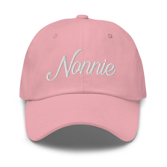 "The Patricia" - Nonnie Dad Hat- Pink Cap, White Embroidery