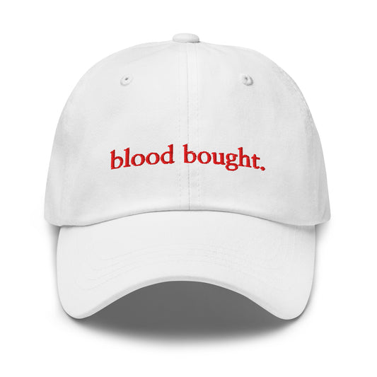 "The Kiki" - Blood Bought Classic Dad Hat - White Hat, Red Embroidery