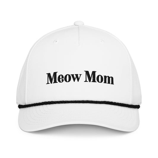 "The Cherie" - Meow Mom Classic Rope Golf Cap - White Hat, Black Embroidery