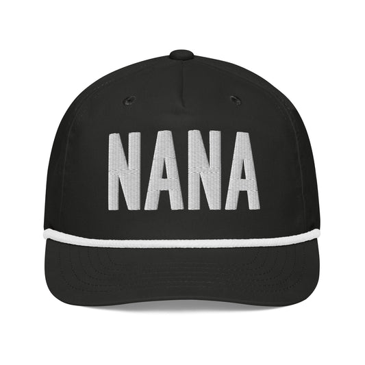"The Gae-Lynn" - Nana Rope Snapback Golf Hat - Black Hat with White Embroidery