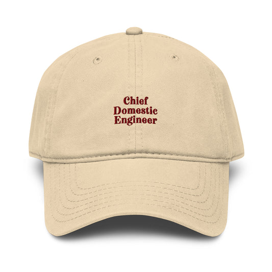 "The Tiffany" - Chief Domestic Engineer Baseball Cap - Khaki Hat, Maroon Embroidery