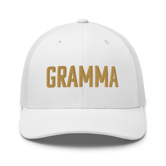 "The Beth" - Gramma Trucker Hat - White Cap, White Embroidery